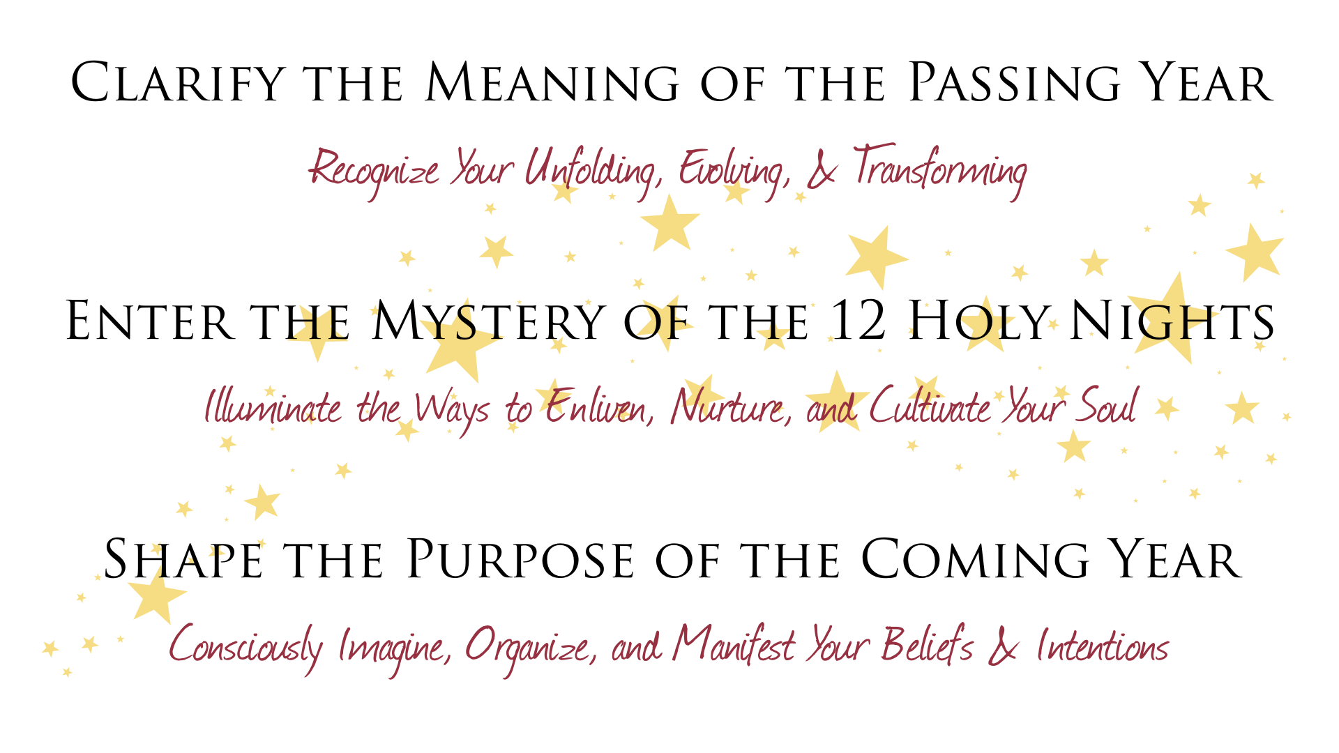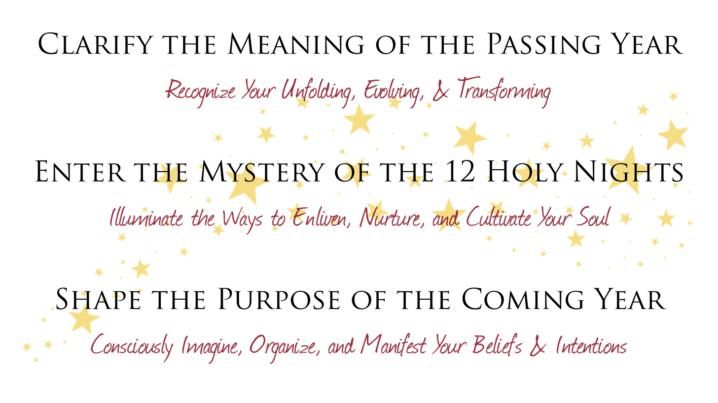 The Holy Nights: 12 Daily Illuminations mailed to your inbox with guide for deeply integrating the mysteries of becoming. Four Zoom Gatherings.